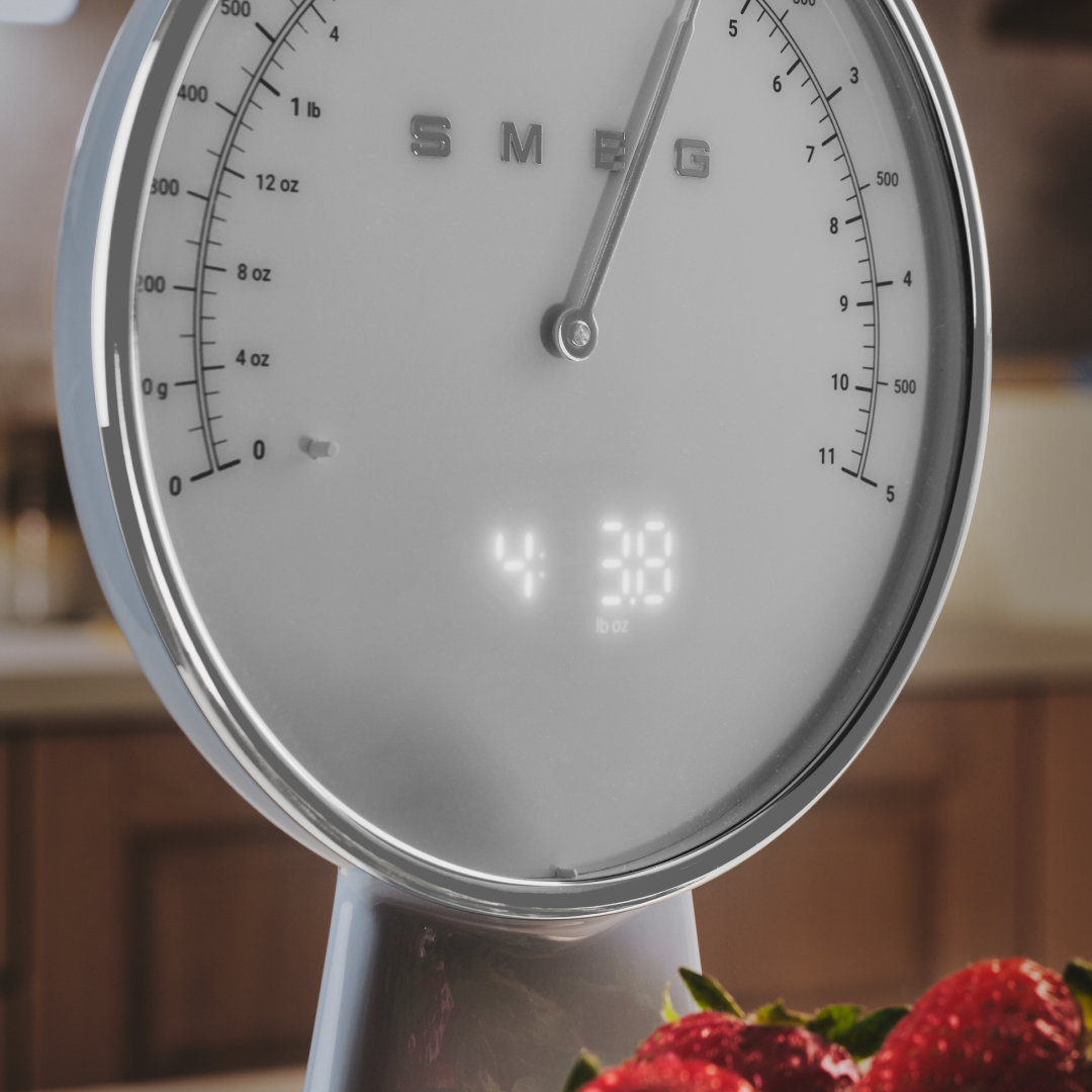Timeless style meets everyday practicality with the SMEG Analog Scale. With a 5kg capacity, easy-to-read digital display, tare function, removable stainless steel bowl, and USB fast charging, it’s perfect for all your kitchen needs.