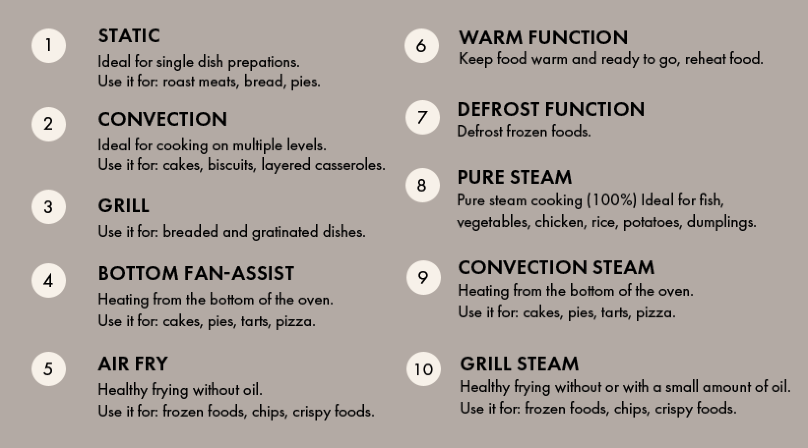 - Steam Excellence: Lock in flavors and nutrients with steam-only or combined steam options, ensuring healthier, more flavorful meals.
