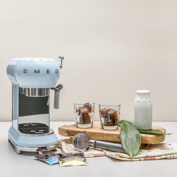 Take home the tradition of authentic Italian coffee making with the Smeg Espresso Coffee Machine. This 50's retro style machine brews a rich shot of espresso and steams milk for a velvety cappuccino.
