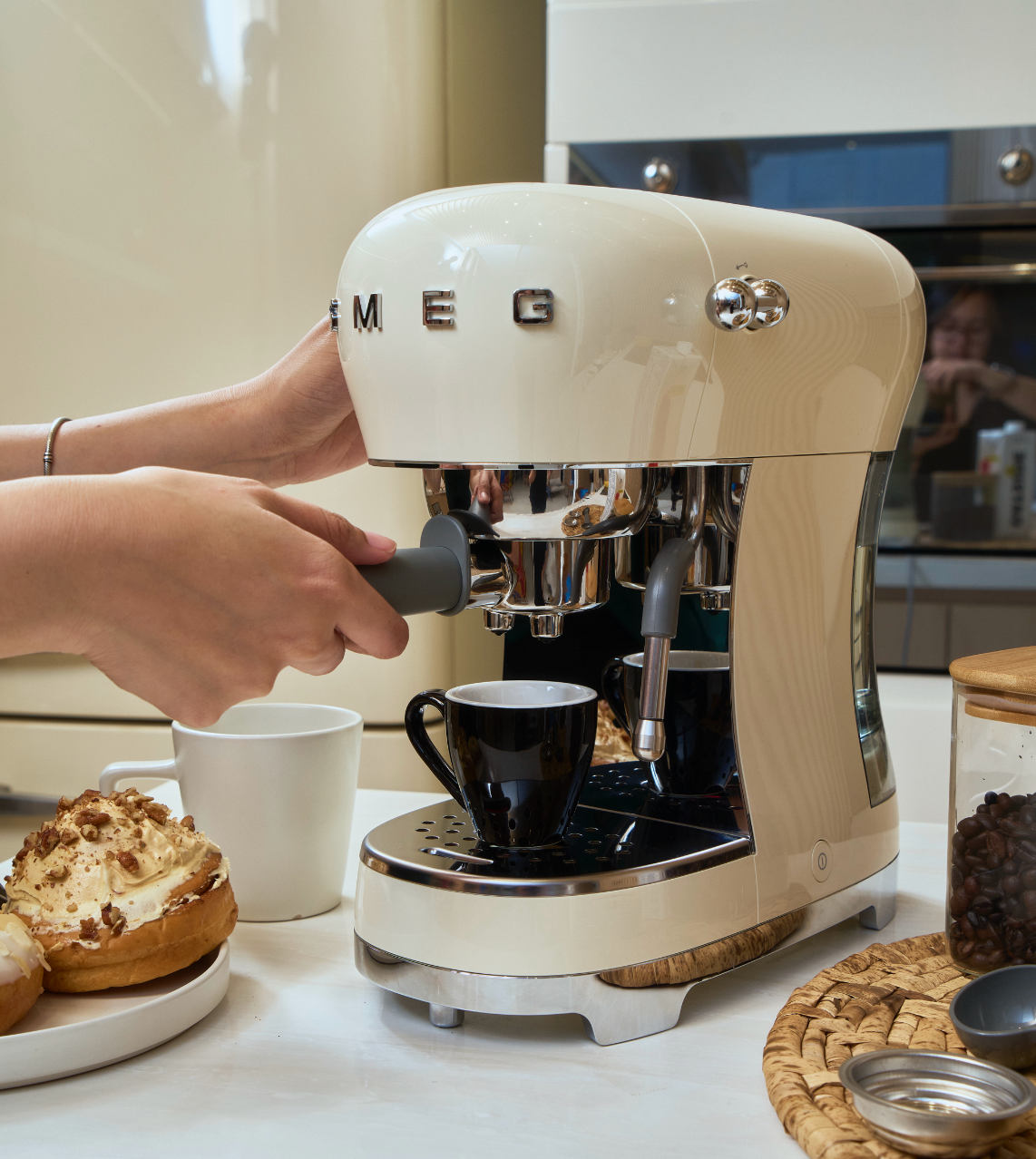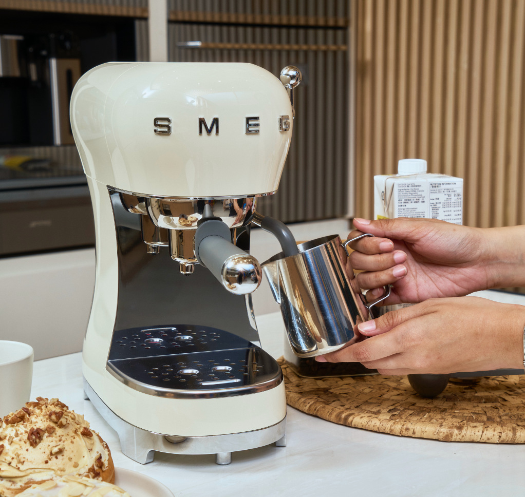 Indulge in café-quality coffee at home with the ECF02, Smeg's stunning Made in Italy manual espresso machine. With 15-bar pressure for perfect espresso and a steam wand for creamy, velvety milk froth, it brings authentic barista style to your kitchen while doubling as a striking design piece.