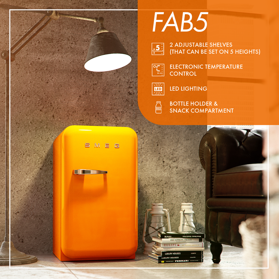 The Smeg FAB5 is the perfect mini chiller for compact spaces. However, if you're looking for more storage and a freezer compartment, we recommend upgrading to the Smeg FAB10 for added convenience.